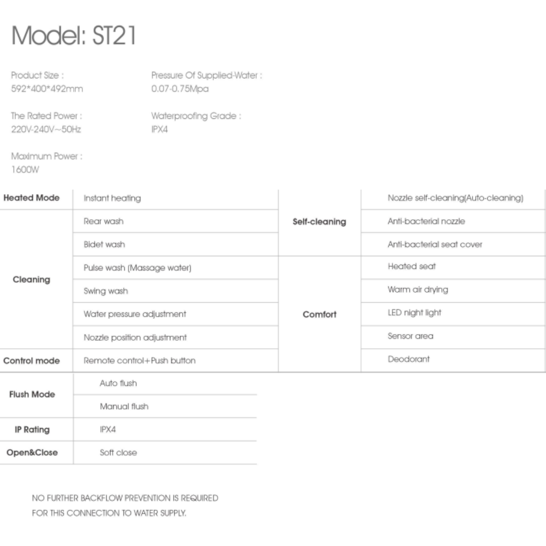 - Self-Cleaning - Nozzle self-cleaning(Auto-cleaning), Anti-bacterial nozzle, Anti-bacterial seat cover